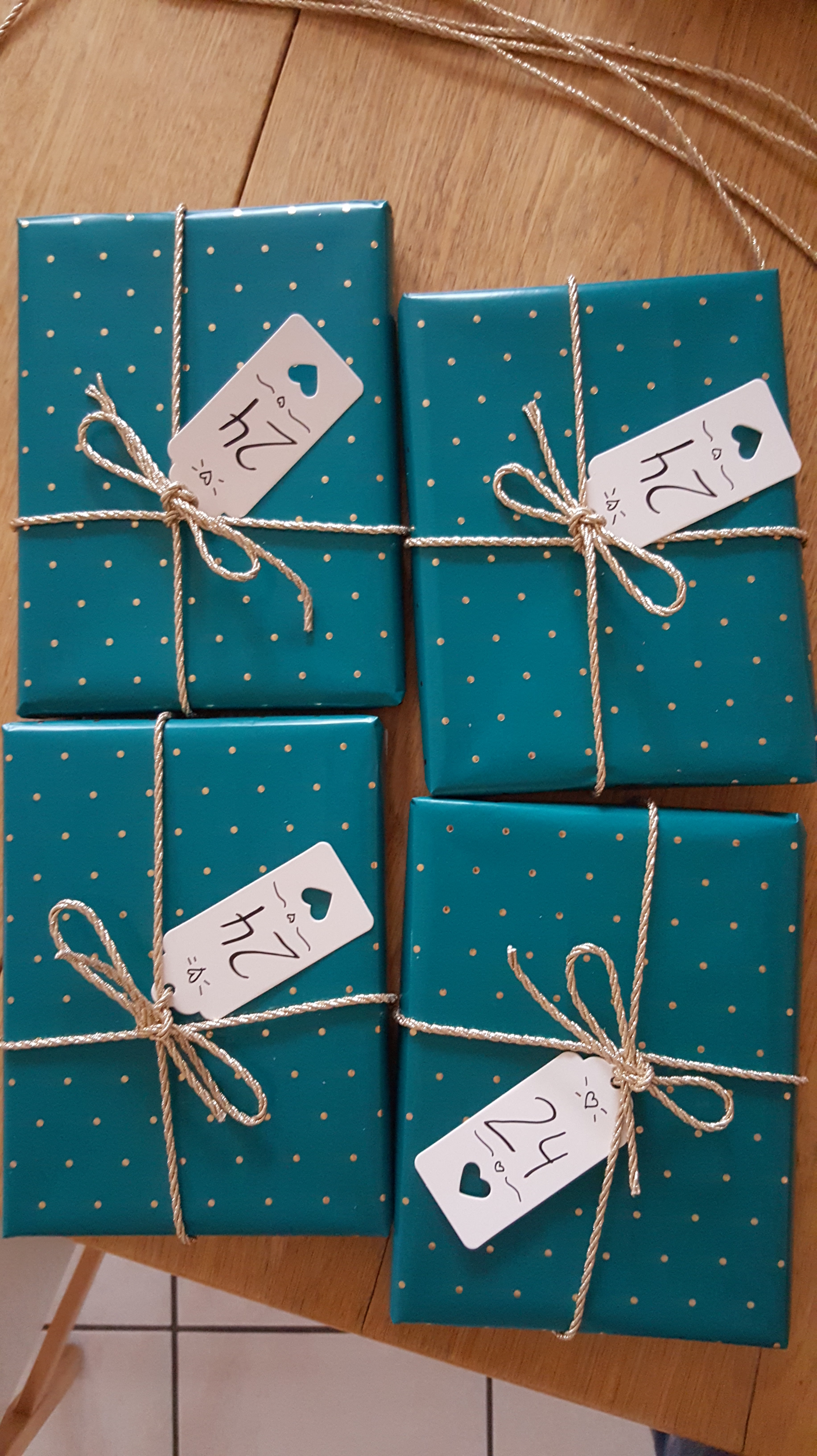 Völlig geflasht von der Resonanz, bin ich nochmal mit Jesus ins Gespräch gegangen und hatte eine Zahl im Kopf, die ich nicht glauben konnte. Ich hatte ja nicht einmal mehr 4 Wochen, bis das erste Adventskalendertürchen geöffnet werden sollte und dazu müssten meine „Helferinnen“ dann ja auch noch einmal so viele machen. Schließlich habe ich meine Freundin, die ebenfalls ein „Türchen“ gemacht hat, gebeten zu beten und zu hören, ob Jesus ihr ebenfalls eine Zahl für weitere Adventskalender gibt. Tja, und da Jesus ihr dann genau dieselbe Zahl wie mir gegeben hatte, nämlich 20 weitere, habe ich noch die anderen beiden gefragt, ob sie noch 20 weitere Gegenstände machen würden – wohl angemerkt, dass es sich um etwas Genähtes und etwas von Hand kalligrafisch Gestaltetes handelt – und auch sie haben es möglich gemacht (sogar der Stoff, der für die genähten Sachen eigentlich definitiv hätte ausgehen müssen, ist einfach nicht ausgegangen! Danke Jesus, dass du auch Stoff vermehren kannst 😊). Ebenso konnte unser christlicher Bücherladen Cap-Shop im Nachbarort, bei dem ich einige meiner Gegenstände bestellt habe, die Dinge schnell beschaffen. Die Tage vergingen wie im Flug und am Ende konnten 20 weitere „Wertvoll-Adventskalender“ unser Haus verlassen und durften Frauen eine ganz besondere Adventszeit bescheren.