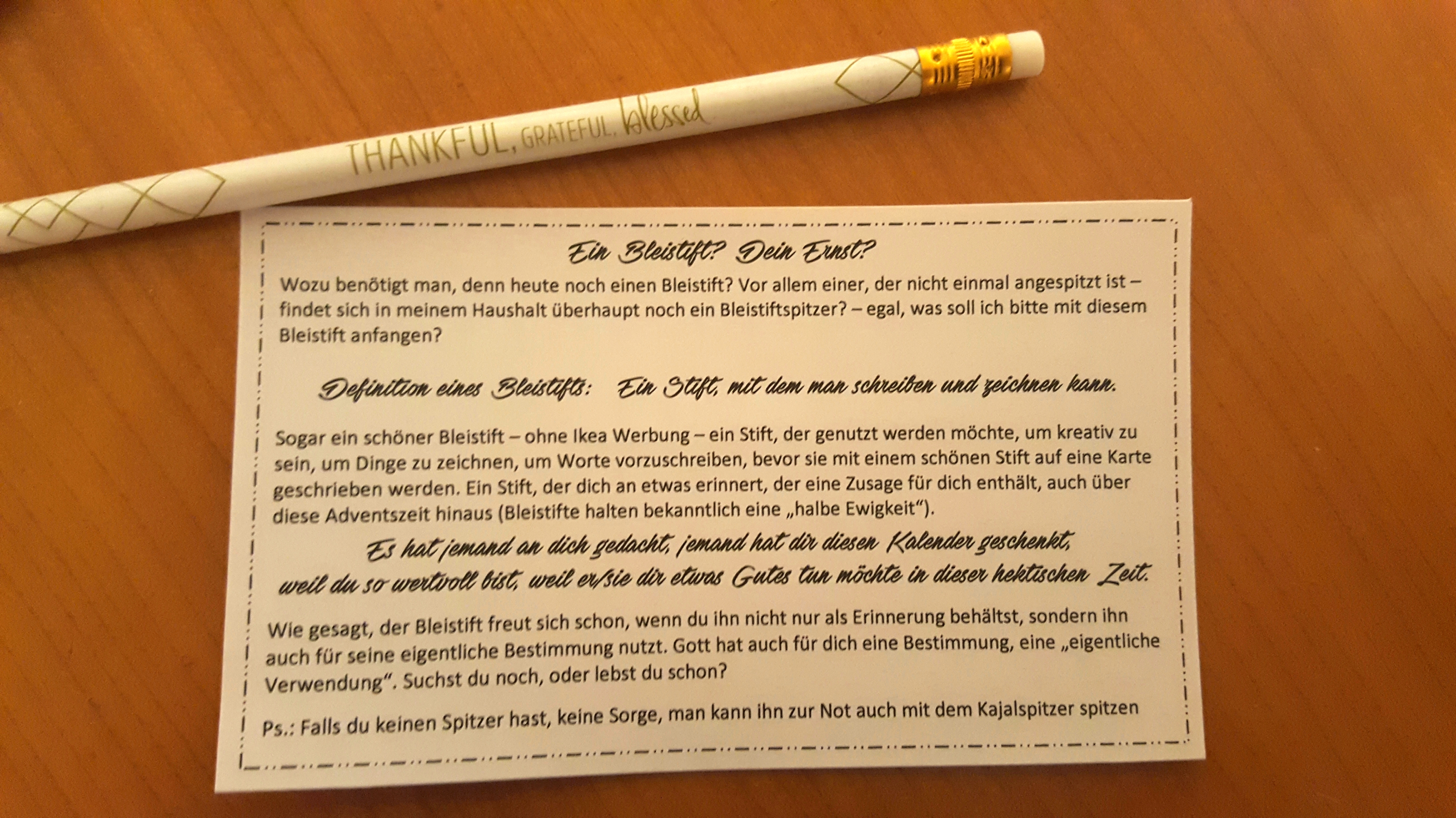 Im Laufe des Dezembers durfte ich durch viele Rückmeldungen erleben, wie sich die Mühe, die Gedanken, die kurzen Nächte und die investierte Zeit gelohnt hat. Aus weltlicher Sicht hätte man zwar eigentlich sagen müsse, dass es nicht wirtschaftlich war, aber aus geistlicher Sicht war es ein voller Erfolg und hat alle meine Erwartungen übertroffen. Unser Kapital war aber dennoch bestens investiert, in Menschen, die dadurch beschenkt wurden – für viele völlig unerwartet und überraschend, dass sich jemand die Mühe macht und dann auch noch an einen denkt (DANKE an euch, die ihr die Kalender mitgenommen und weiterverschenkt habt!). Es ist nicht nur viel Wertschätzung geflossen, sondern es ist auch das ein oder andere von den Impulsen in die Herzen gewandert und Gott konnte so, der einen oder anderen noch einmal neu und anders begegnen.