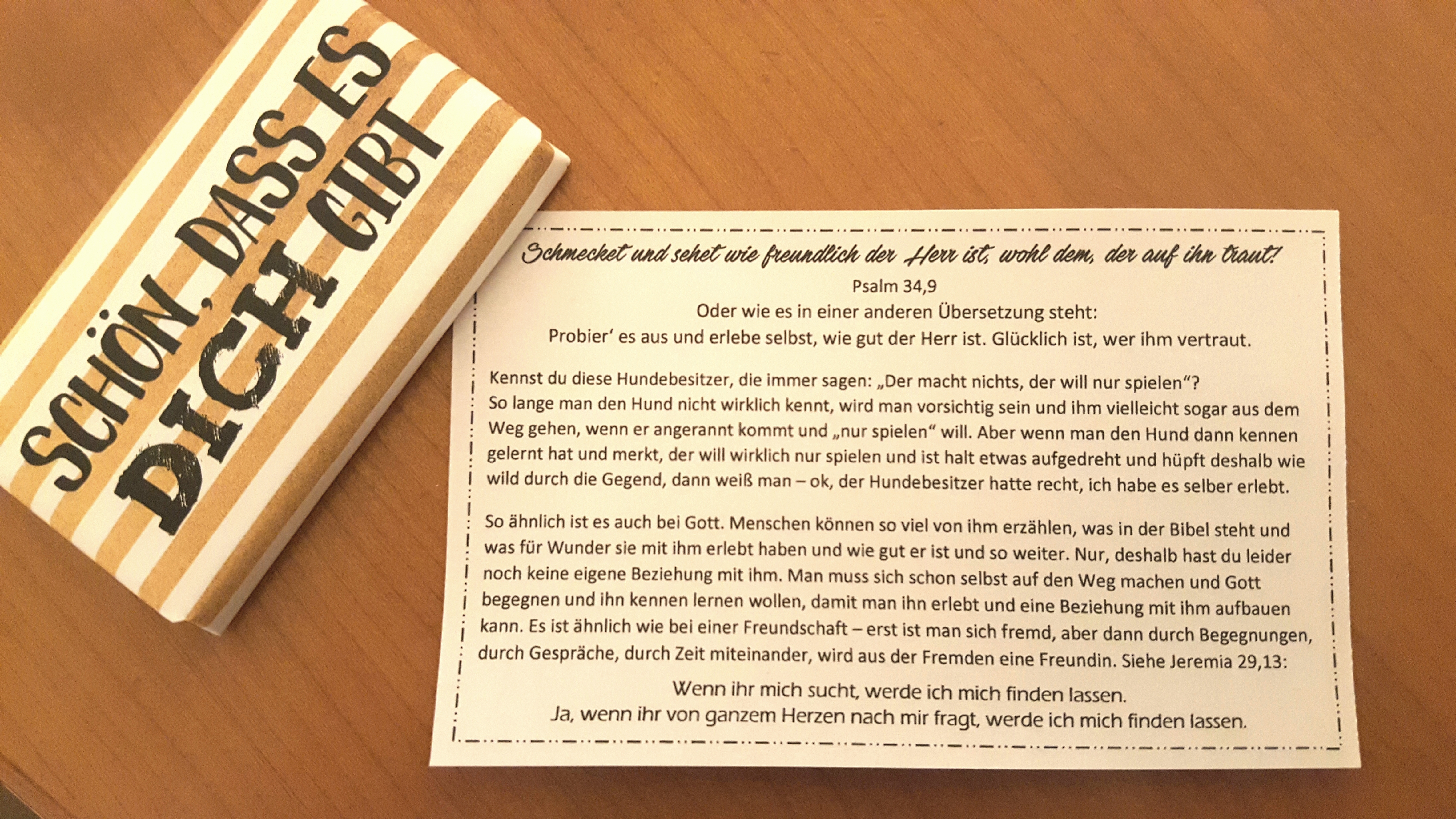„Kalender, die für jeden Tag einen Bibelvers, einen kurzen Impuls und einen Gegenstand enthalten. Wertvoll-Kalender, die dafür gemacht sind, Herzen zu erreichen, Gottes Wort hineinzusäen, zu ermutigen, oder einen auch mal herauszufordern. Sie können gegen Spende mitgenommen und entweder selbst behalten oder an Frauen verschenkt werden, bei denen du denkst: Das würde ihr jetzt gut tun.“