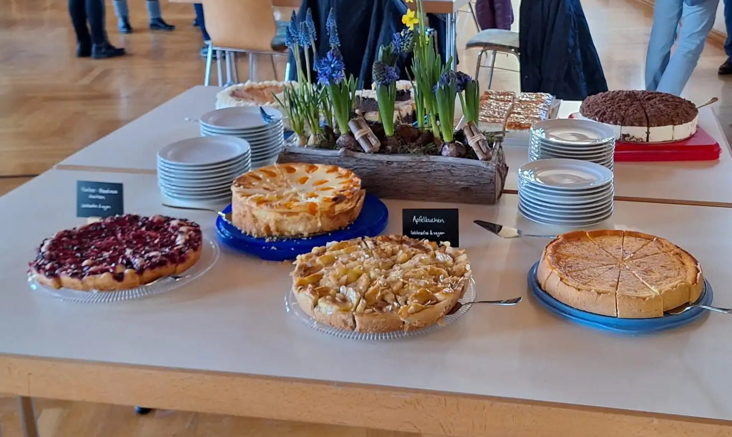„Coole Idee und ich würde eigentlich sofort „ja“ sagen, aber ich mache es wie du, Caro, und frage erst einmal Jesus, ob es für mich dran ist“ – so gut, dass sie mich an diesen Satz erinnert hat – sind doch nicht alle Aufgaben oder Anfragen, Gottes Idee für mich (oder dich). Dankbarerweise war ich mir sehr sicher, dass Sarah es machen wird, und konnte so entspannt warten, bis Jesus es ihr auch so „bestätigt“ hatte. - Das Kuchenbuffet füllte sich mit leckeren selbstgebackenen Kuchen und Nutella-Blätterteig-Schnecken, die manche Frauen mitbrachten.