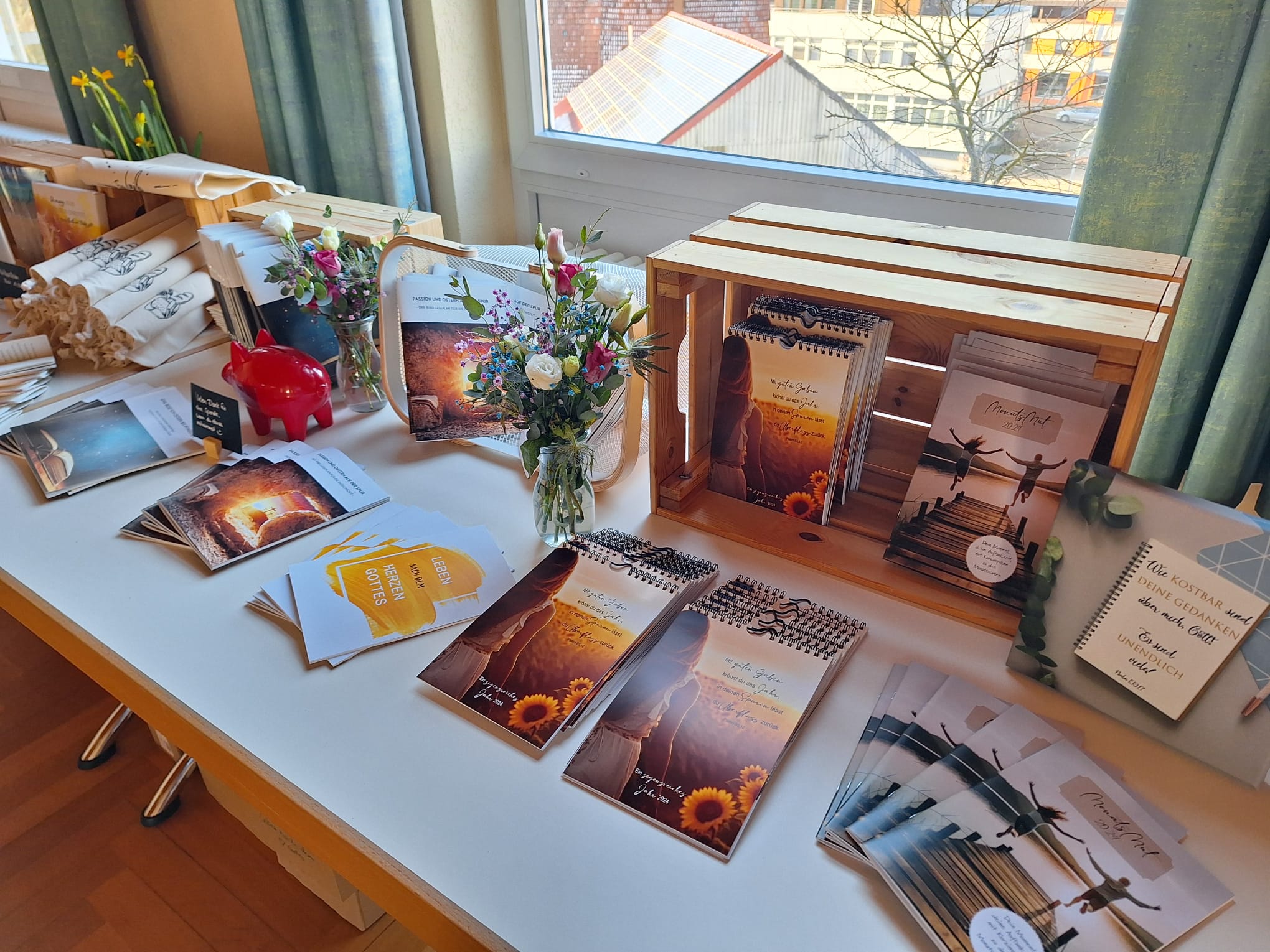 Als ich am Samstag mit meinem Mann zusammen den Gemeinderaum „richtete“, fand ich es irgendwie krass, dass Gott diesem Nachmittag doch so eine Struktur gegeben hatte. Genauso erstaunt war ich, dass die ganzen gedruckten „Werke“, die ich mit ihm schon schreiben oder designen durfte, nicht auf einen Tisch passten und war umso mehr gespannt, was er am Sonntag für jede einzelne Frau vorbereitet hatte. Der Sonntag kam und es war ein entspannter und segensreicher Nachmittag – eine kleine Auszeit vom Alltag. Nach Kaffee und Kuchen durften wir durch Sarahs Impuls mehr über unsere Gefühle lernen und wie wir damit umgehen. Ergänzt wurde es durch einige Gedanken von Rosemarie und schließlich durften wir uns in einer „ruhigeren“ Zeit auf Gott ausrichten, hören, wer er ist, was er Gutes für uns tut und uns neu von ihm für unseren Alltag und alles, was dieses Jahr auf uns zukommt, füllen lassen. Danke an dieser Stelle euch beiden für euren Impuls! Und auch an meine fleißigen Helfen/innen! Alleine hätte ich es nicht gepackt, so einen schönen und segensreichen Nachmittag zu gestalten (und auch wieder aufzuräumen).